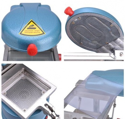 Вакуумный портативный формирователь кап обеспечивает высокую производительность, а компактные размеры прибора сохраняют пространство рабочего стола. Двигатель вакуумной машинки находится под перфорирующей частью, что обеспечивает высокоточное всасывание. Эта удобная и надёжная вакуумная машинка - незаменимый инструмент в зуботехнической лабаратории и ортодонтическом кабинете, а также в стоматологическом кабинете где практикуют кабинетное отбеливание.