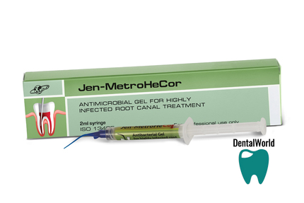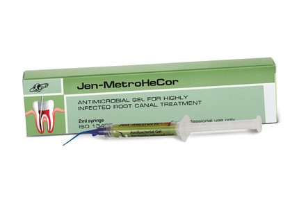 Jen-MetroHeCor являє собою унікальну комбінацію з 3 активних інгредієнтів, розчинених (в найбільш активному стані) в інертній біополімерній матриці. При температурі людського тіла текучість гелю різко зростає, дозволяючи активним інгредієнтам проникати навіть в найвіддаленіші ділянки кореневих каналів
