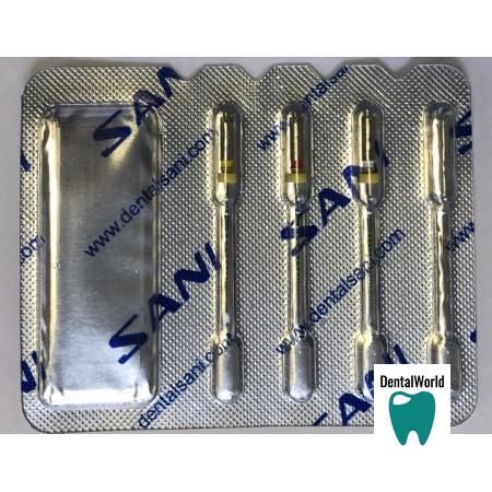 - Файлы изготовлены из никель-титанового сплава (NiTi) и полностью безопасны для клинического применения. Их особая конусная форма не только помогает очистить корневой канал, но и предотвращает прорезывание дентина.