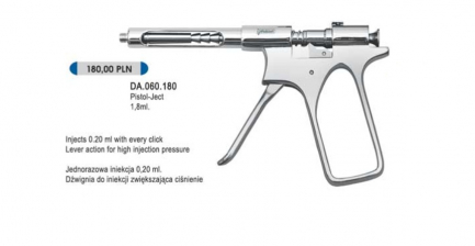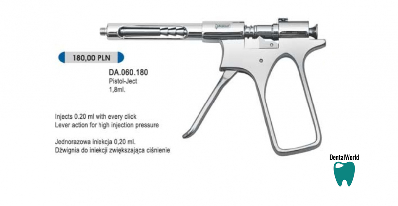 Использует стандартную карпулу, вводит малое количество (в среднем 0,2 мл) анестетика за «щелчок», позволяя проводить медленную атравматическую инъекцию. Одной инъекции достаточно для интралигаментарной анестезии. Сделан из высокосортной нержавеющей стали