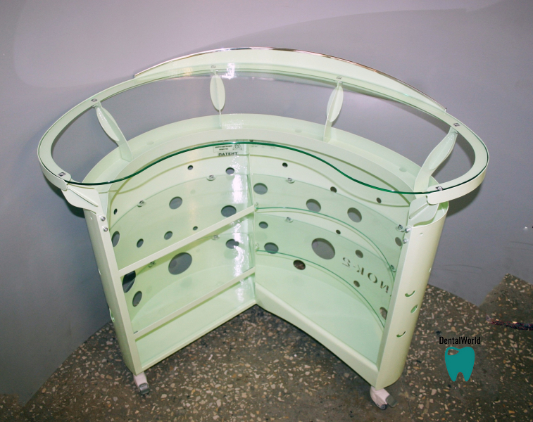 Столешница столика выполнена из каленного стекла. За всю историю производства столиков ПАНОК только однажды пришлось заменить поврежденное стекло. На столик ПАНОК упала при монтаже новая стоматологическая установка. Стекло вместе с металлической окантовкой столешницы пришлось заменить.