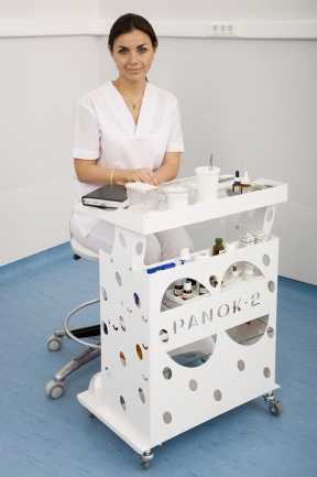 Столик медицинский ПАНОК-2 овальный разработан специально для стоматологического приема и предназначен для стоматологов, которые работают сидя за столиком.