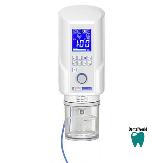 Материалы для моделей, дентальные оттискные массы, гипсы, паковочные массы и силиконы профессионально смешиваются до полной однородности и без возникновения. Мощный мотор плавно вращает смеситель с 100-450 оборотами в минуту. На электронном дисплее хорошо видно настроенное время смешивания. Оно по секундам отсчитывается назад и может быть скорректировано в процессе смешивания. Двойной всасывающий фильтр предотвращает проникновение пыли или прочих материалов в вакуумную помпу. Его можно почистить в несколько приёмов в лаборатории (ультразвуковая ванночка) или заменить. Новейшим достижением является автоматическое подключение стакана. После установки смесителя мотор включается с помощью импульса. В течение секунды происходит фиксация и одновременно из стакана отсасывается воздух. В комплекте стакан емкостью 500мл. Дополнительно в распоряжении 4 стакана ёмкостью 65, 200, 700 и 1000 мл. Твистер дополнительно может быть укомплектован штативом для настольного использования прибора. На прибор 3-летняя гарантия производителя.