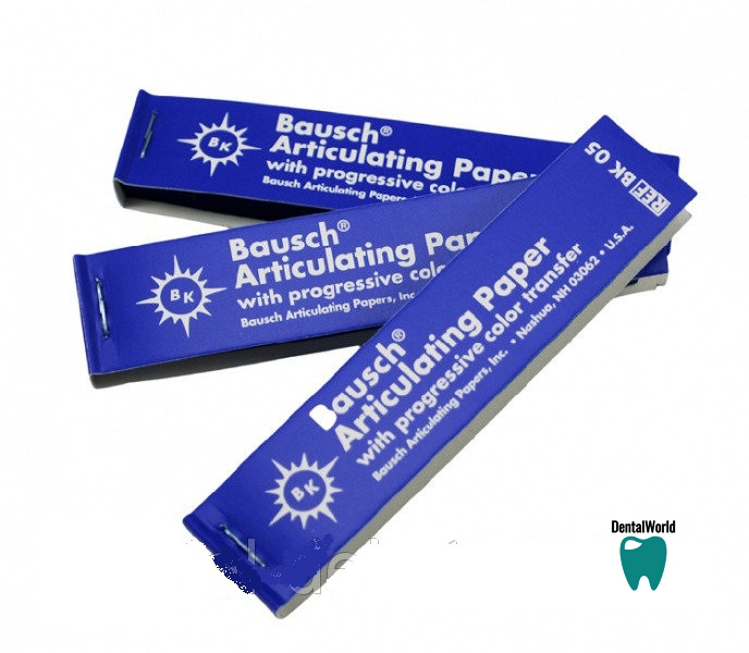 Артикуляційна папір Бауша товщиною 200μ з наростаючою інтенсивністю кольору є єдиним видом паперу, що дозволяє представити жувальну силу різної інтенсивності у вигляді кольорових відображень з відтінками, що залежать від величини навантаження: