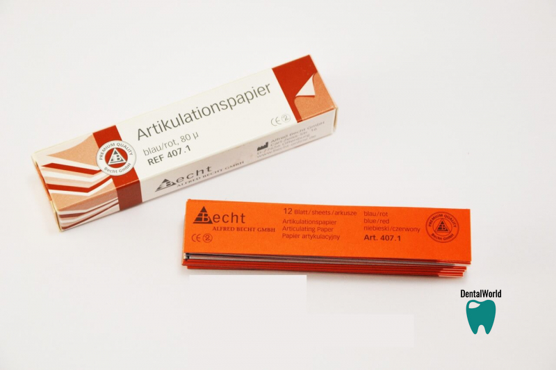 Alfred Becht GmbH – известный производитель из Германии. Немцы традиционно уделяют максимум внимания качеству своей продукции. Это касается любых материалов и препаратов, применяемых в стоматологической практике. В данном случае речь идет об артикуляционной бумаге. Толщина этого образца – всего 80 мкм. При этом бумага обладает высокой прочностью, что отличает ее от продукции многих других производителей. Упаковка — 144 листов, красно-синяя.