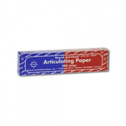 Эта бумага, как и сорокамикронная бумага, исключает получение ложных или смазанных контактных пунктов и обеспечивает точные, чёткие цветные отпечатки. Несколько большая толщина несущего материала позволяет производить эту бумагу в форме подковообразных полосок. Эта отштампованная бумага без затруднений накладывается на зубную поверхность и не требует применения специальных фиксирующих вилок или пинцетов. Все виды подковообразных полосок поставляются в пластмассовом раздаточном устройстве, из которого вы можете достать бумагу одной рукой. Подковообразные полоски особенно пригодны для пациентов, у которых, из-за патологии височно-нижнечелюстного сустава, при смыкании зубных рядов соприкасаются антагонисты только одной из сторон. Врач может сразу распознать, какая из сторон предпочитается при акте жевания. При окклюзионной проверке общих съёмных протезов, преимущественно таких, которые припасованы в соответствии с концепцией билатерально сбалансированной окклюзии, желательно получить отпечатки равной интенсивности на всех контактных пунктах. Требование равной интенсивности отпечатков на контактных пунктах всей зубной дуги является абсолютно необходимым условием правильной припасовки накусочных шин (шина Мичигана). При этом подковообразные полоски бумаги Бауша значительно облегчают проведение проверочных проб на смоченных слюной пластмассовых поверхностях.