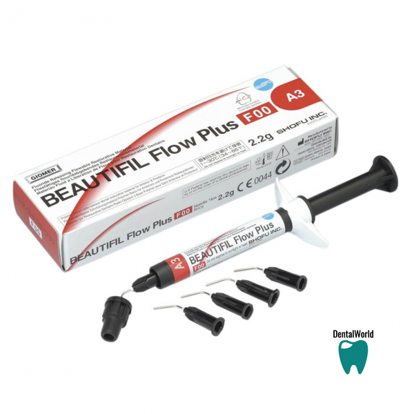 Beautifil Flow Plus F00 – светоотверждаемый выделяющий фтор инъецируемый пакуемый реставрационный материал (F00 – практически нулевая текучесть). Преимущества: возможность моделирования анатомических элементов, не стекает, возможность применения, как на жевательных поверхностях, так и восстановления проксимальных краях; устойчивость к бактериальной колонизации; профилактика вторичного кариеса; высокая прочность на сжатие и на разрыв; рентгеноконтрастен. По прочности не уступает конденсируемым реставрационным материалам. Применение: формирования окклюзионной анатомии; реставрация полостей всех классов. Оттенки: А0,5; А1; А10; А2; А20; А3; А3,5; А4; В1; В2; BW; C2; D2; Inc.
