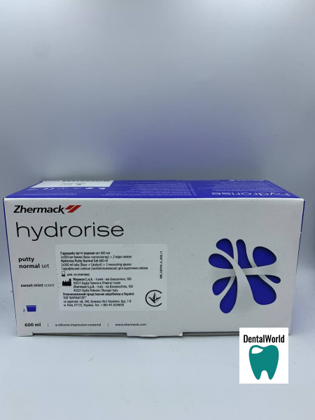 Масса для оттисков Hydrorise Putty normal является продуктом компании Zhermack (Италия), которая является дочерней компанией всемирно известной компании dentsply sirona. Её основную часть складывает А-силикон повышенной вязкости. Изготовлен по строгим стандартам качества ISO 482 - ADA 19. Hydrorise Putty normal используется в качестве оттискного материала для накладок, вкладок, мостовидных протезов и коронок. Её рабочая смесь подготавливается из двух, идущих в комплекте, баночек. Это база и катализатор, которые необходимо смешивать по пропорциям 1:1.