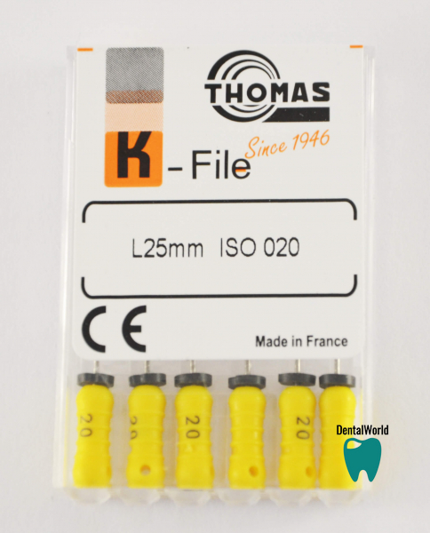 K-FILE Thomas - качественные французские эндодонтические инструменты, гибкие и прочные на разрыв. Расфасованы по 6 шт в упаковке.