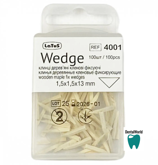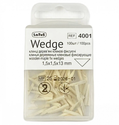 Клинья деревянные фиксирующие БЕЛЫЕ Латус 4011 - применяются для создания межзубного промежутка при установке матриц или сепарационных пластин, а также для дополнительной фиксации матриц и обеспечения лучшего их прилегания к поверхности зуба.