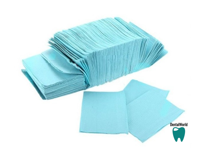 Нагрудники - салфетки Sanador 430 х 330 мм, стоматологические трехслойные текстурированные, Голубые.Цвет: Голубой