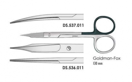 Ножницы Голдман-Fox изогнутые 130мм, одно лезвие с насечкой