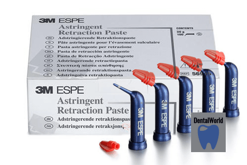 Ретракционная паста Астригнент Ретракшин являеться одной из инновационных разработок компании 3M ESPE. Применение Astringent Retraction Paste помогает врачу стоматологу добиться хорошего гемостаза, а соответственно сухой и чистой зубодесневой борозды. Также за счет незначительного увеличения в объеме паста Астригнент Ретракшин, после нанесения, раскрывает зубодесневую борозду.