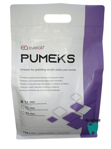 Порошок PUMEKS призначений для професійного використання у зуботехнічних лабораторіях. Завдяки дрібнодисперсній структурі, засіб забезпечує ефективне, але делікатне очищення та попереднє полірування стоматологічних матеріалів.