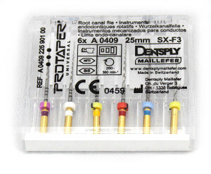 - Упаковка 6 штук.Размеры SХ, S1, S2, F1, F2, F3, ассорти для лечения, базовый для лечения (S1, S2, F1 по 2 инструмента), ассорти D1-D3, длина - 21, 25 мм, 31 мм.