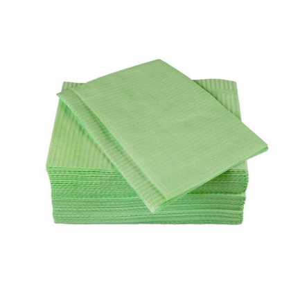 Трехслойные салфетки для пациента одержат не промокающую основу, надежно защищая пациента во время приема от случайного попадания влаги и материалов на одежду.