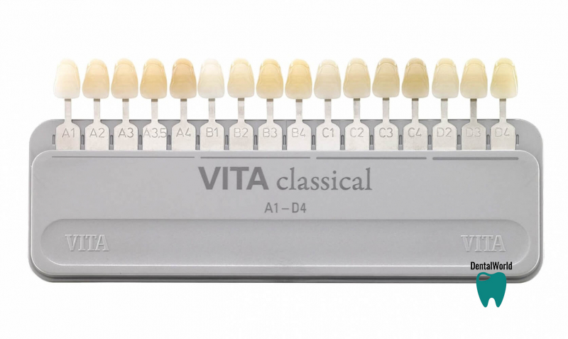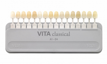 Шкала Вита представляет собой пластмассовую рейку с прикрепленными на ней образцами зубов, которые могут быть выполнены из бумаги, пластика, ламинированного картона. Наиболее точными считаются образцы из керамики, поскольку фарфор по светоотражающим свойствам схож с эмалью зубов. В шкале представлены образцы зубов различных оттенков, которые имеют буквенно-цифровое обозначение. Буква (A, B, Cили D) означает определенный тип цвета:
