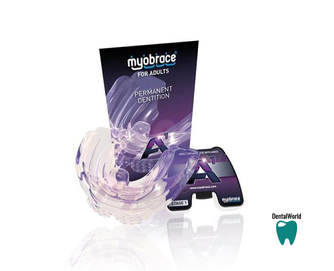 Апарати для дорослих Myobrace for Adults™ призначені для корекції шкідливих міофункціональних звичок та лікування зубощелепно-лицьового розвитку. Для кожного з трьох етапів лікування використовується певна модель апарату. A1 призначена для початкового етапу вирівнювання зубних рядів та корекції шкідливих звичок. Апарат виготовляється з м'якого та пружного матеріалу, що дозволяє йому легко адаптуватися до будь-яких аномалій прикусу. Апарат A1 випускається у двох розмірах (стандартний та великий).