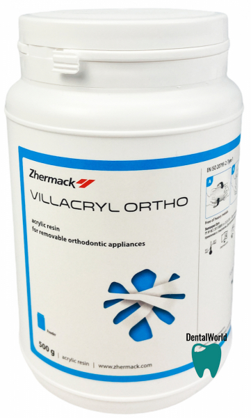 Villacryl Ortho - акриловый материал, предназначенный для изготовления подвижных ортодонтических аппаратов методом насыпания порошка на модель и заполнением мономером (методом „salt and pepper”). Материал предназначен для низкотемпературной полимеризации под давлением.